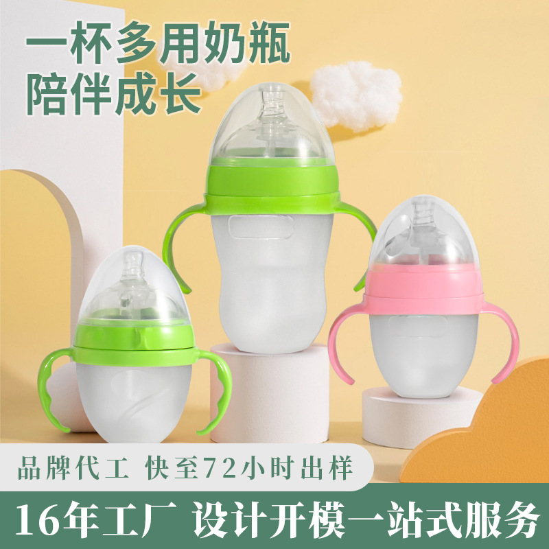メーカー卸売り新生児シリコン哺乳瓶は母乳の膨張防止ベルトハンドル重力ボールストロー哺乳瓶のカスタム