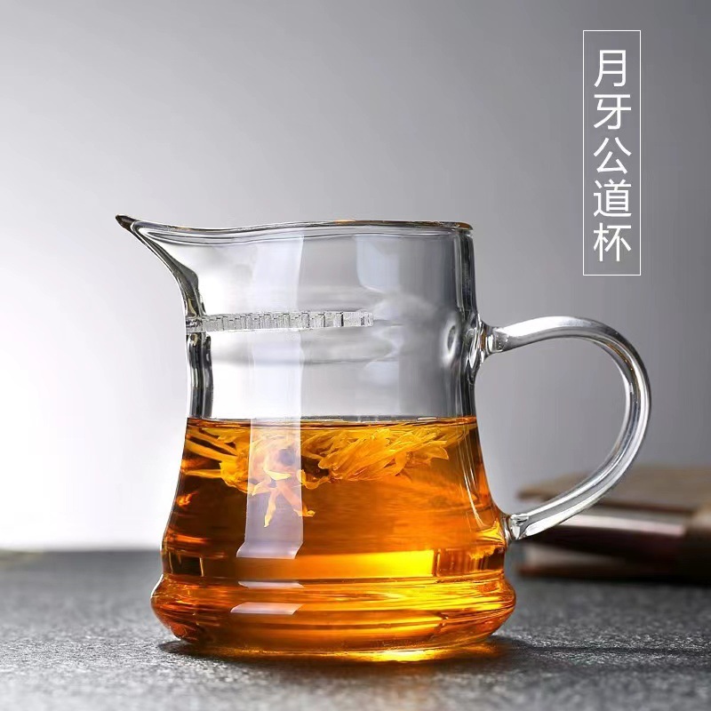 ガラス三日月フェアカップ茶漏れ一体型ティーセットフィルターティーカップフィルターカンフーティーポットティーディバイダー