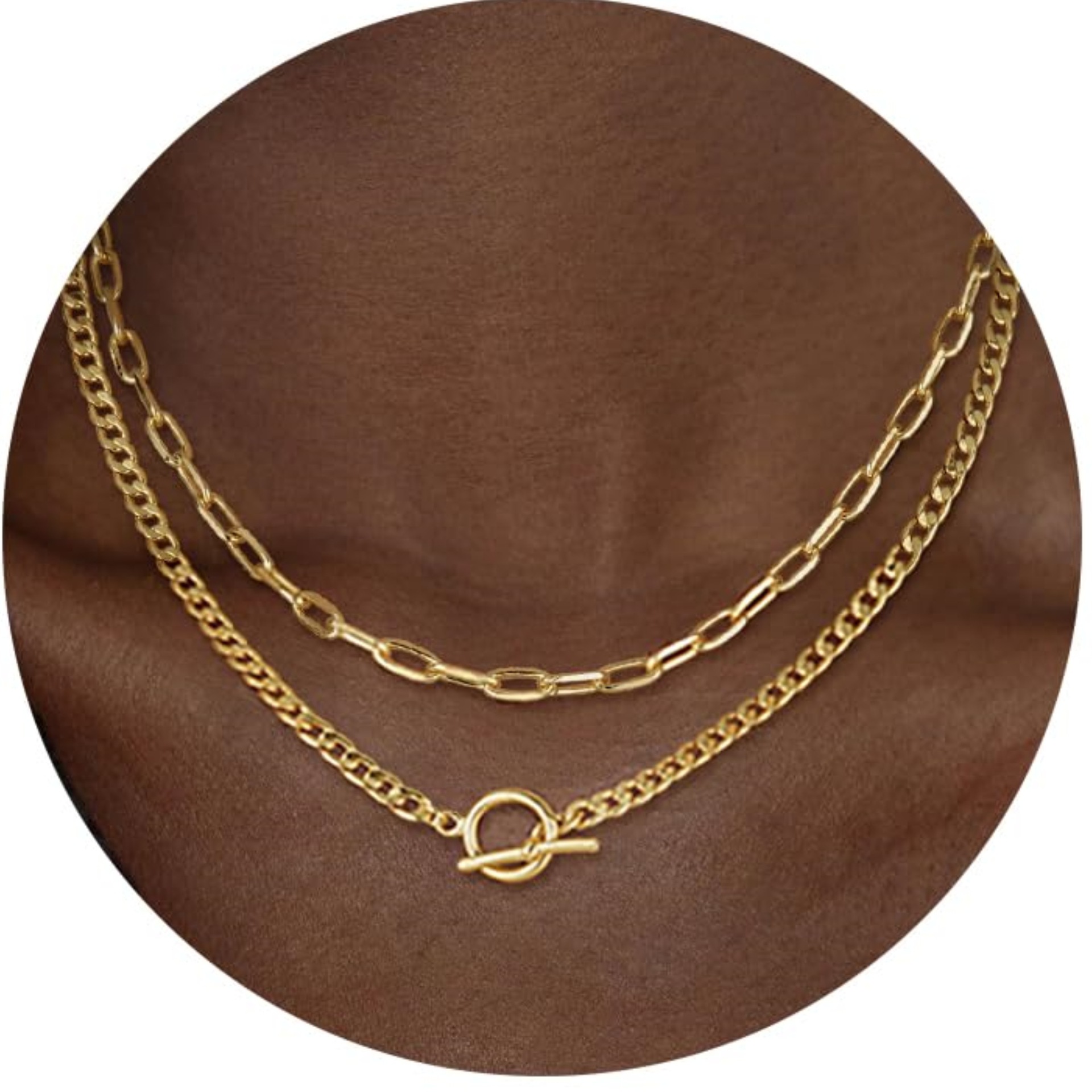 アマゾンのファッションの精巧な金のチェーンのネックレスの女性のファッションのスキューバチェーンのクリップチェーンはボタンのネックレスを動かして重ねて装着することができます。