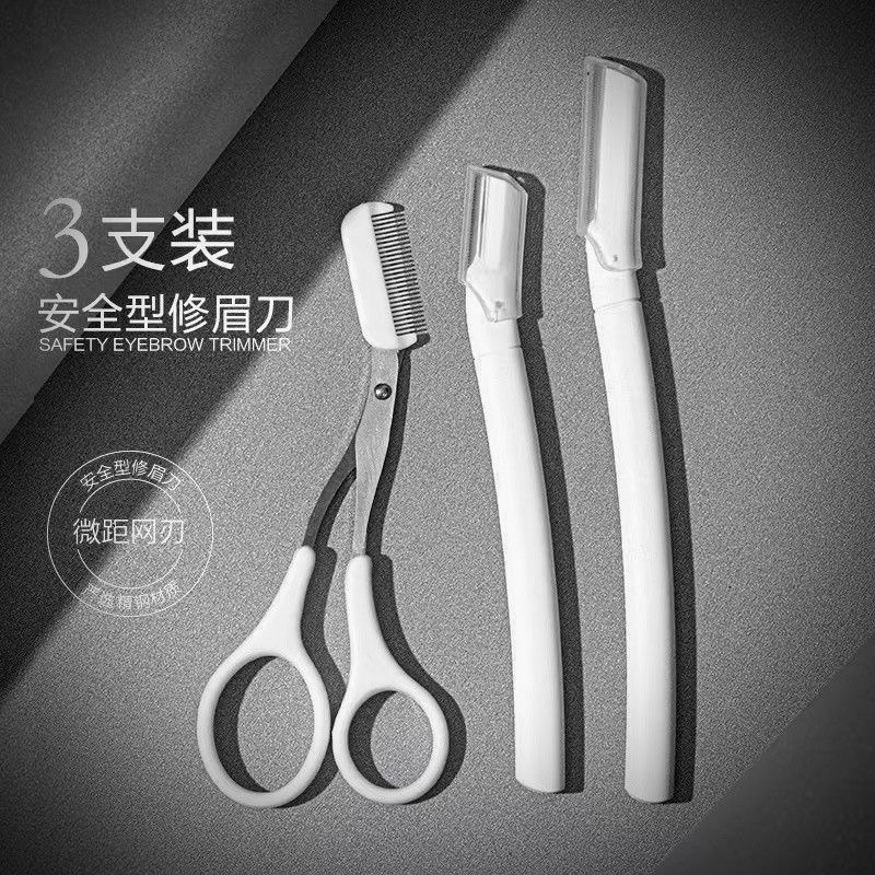 眉毛修理ナイフセット安全型マクロ眉毛剃刀小櫛眉毛切りステンレス眉毛修理刀剃毛刀神器
