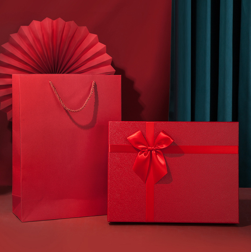 赤いお祝いの包装箱空箱結婚お土産箱服マフラープレゼント箱シンプルなギフト箱