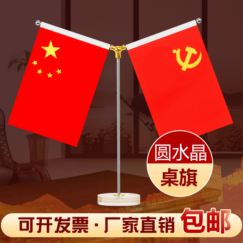 事務室のテーブルの旗は水晶の台座の旗の竿の会議室のデスクの小さい紅旗の装飾会社を飾って旗を契約します。