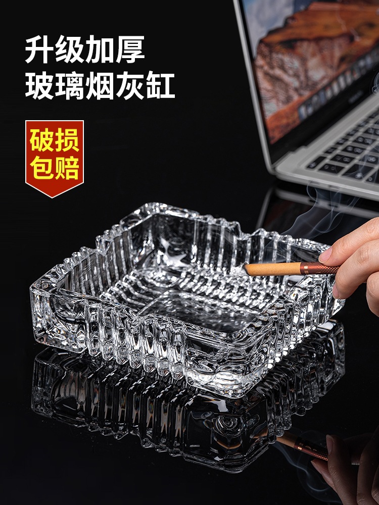 特大サイズのガラス灰皿創意ホテル家庭用リビングルーム水晶灰皿オフィス防飛灰特大号