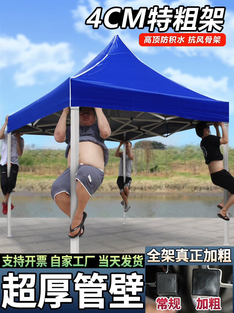 厚い防雨日よけ四脚傘テント出店用広告大傘四角雨棚屋外折り畳み小屋伸縮