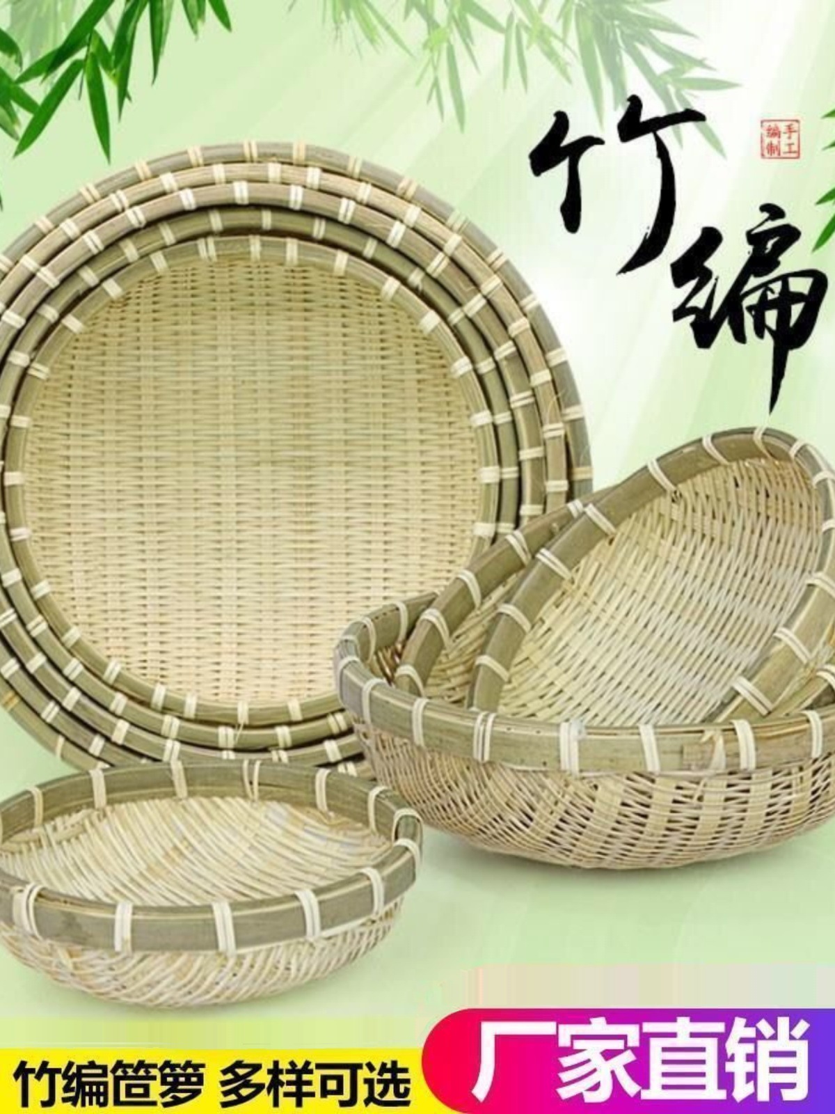 竹編み箕竹編みかごマントーかご手作り丸い竹かご洗い野菜水切り果物かご竹編み収納かご