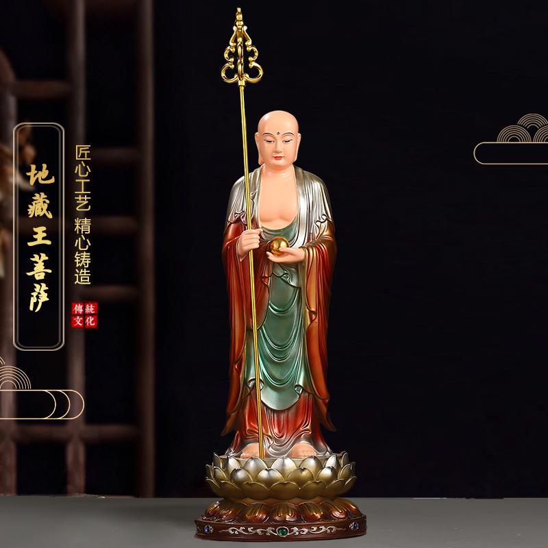 地蔵王九華山地蔵菩薩仏像お寺家庭用樹脂客間礼仏置物駅像婆三聖
