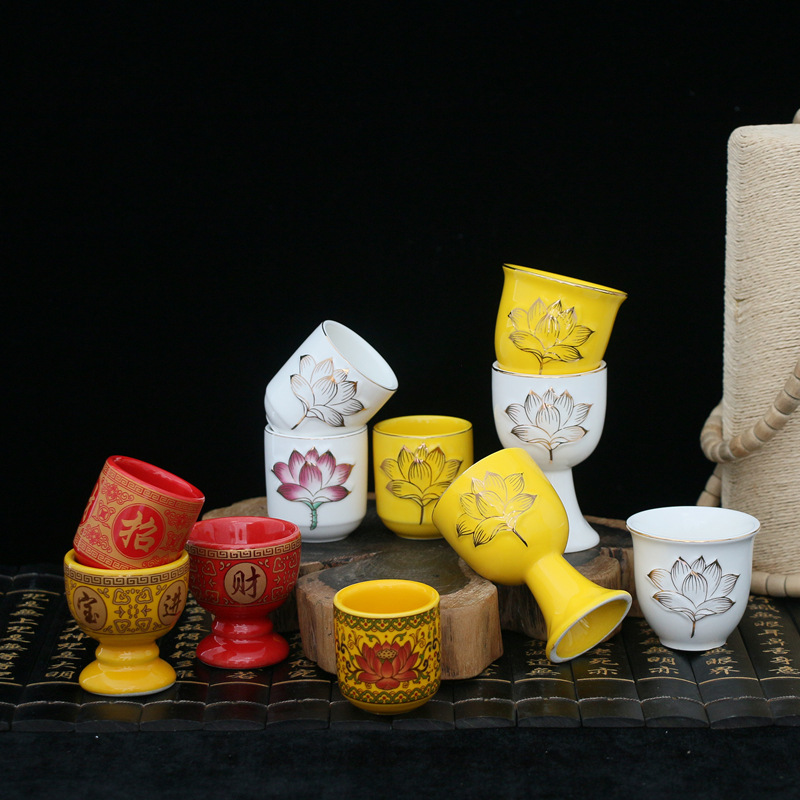 陶磁器の仏杯の陶磁器の浄水杯の蓮の花の仏前の観音の給水杯の家庭用の財神の小さい杯は引っ越します。