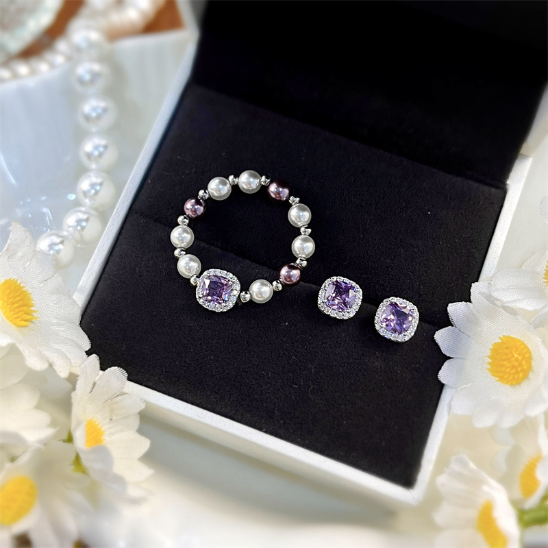 シュガーキューブパープルジルコンパールリングライト高級ハイエンドパープルジルコンパール弾性糸リング同じブレスレット