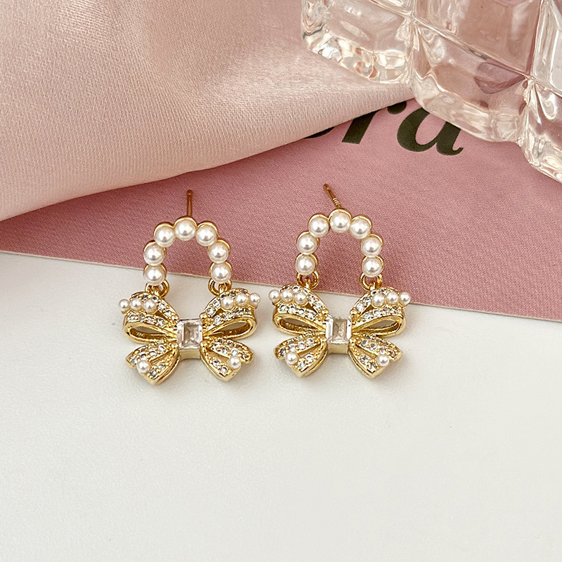 韓国の東大門のフランス式の透かし彫りの蝶結びの真珠は小さくて耳に落ちます。