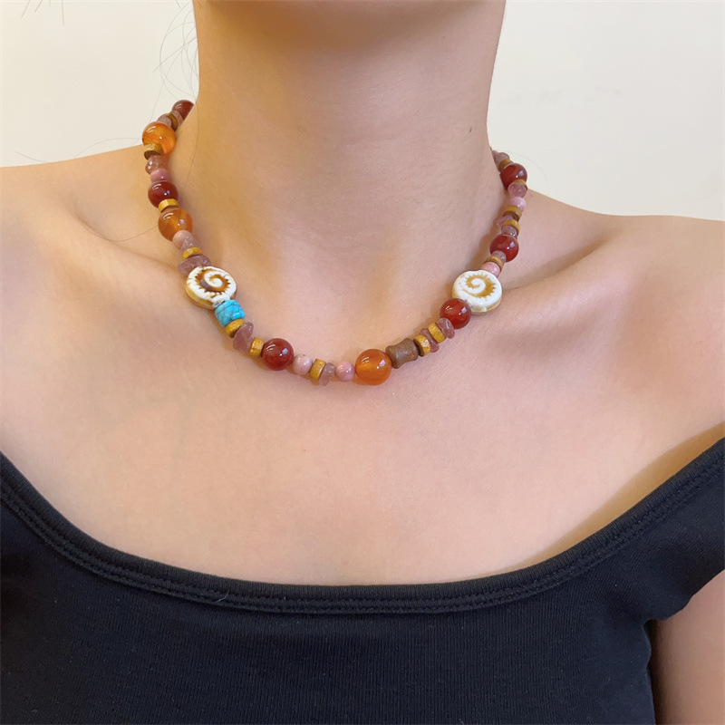 趙露思同項の赤い瑪瑙の数珠のネックレスの女性の大衆の多い元素の天然石のセーターのチェーンの復古の高級な首の鎖
