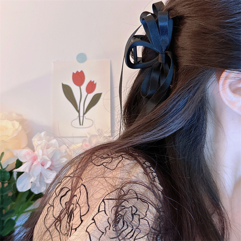気質リボン付きの女性2023新型ネットレッド後頭部ヘアピン高級サメクリップ