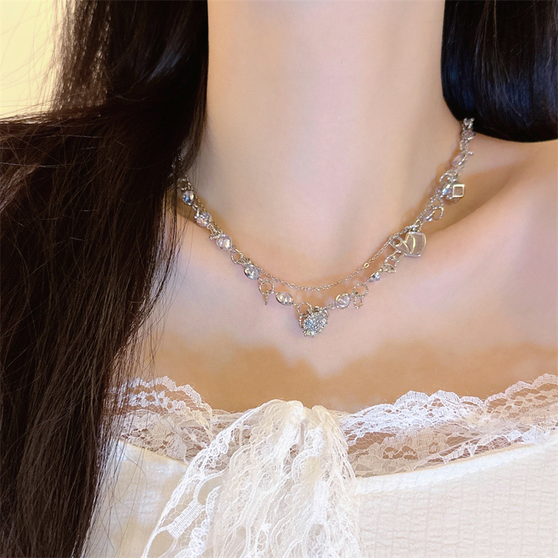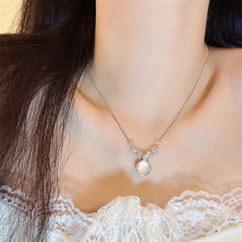 月の光の石の数珠のペンダントの水晶のネックレスの女性の項の軽くて豪華なデザイン感の小さい大衆の高級感のネットの赤い親友の装飾