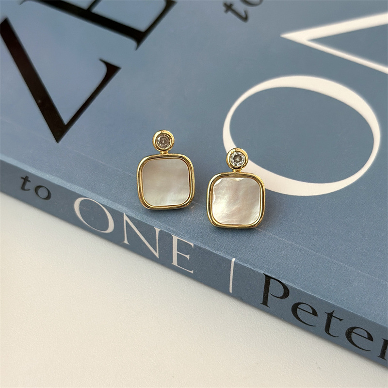フランスの四角い貝殻のイヤリングは大衆のデザイン感があります。