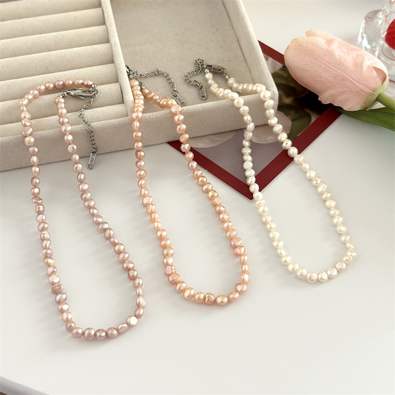 ピンクの紫色の天然バロック真珠の鎖の鎖の首の鎖の高級な大衆の設計の気質の復古の不規則なネックレス