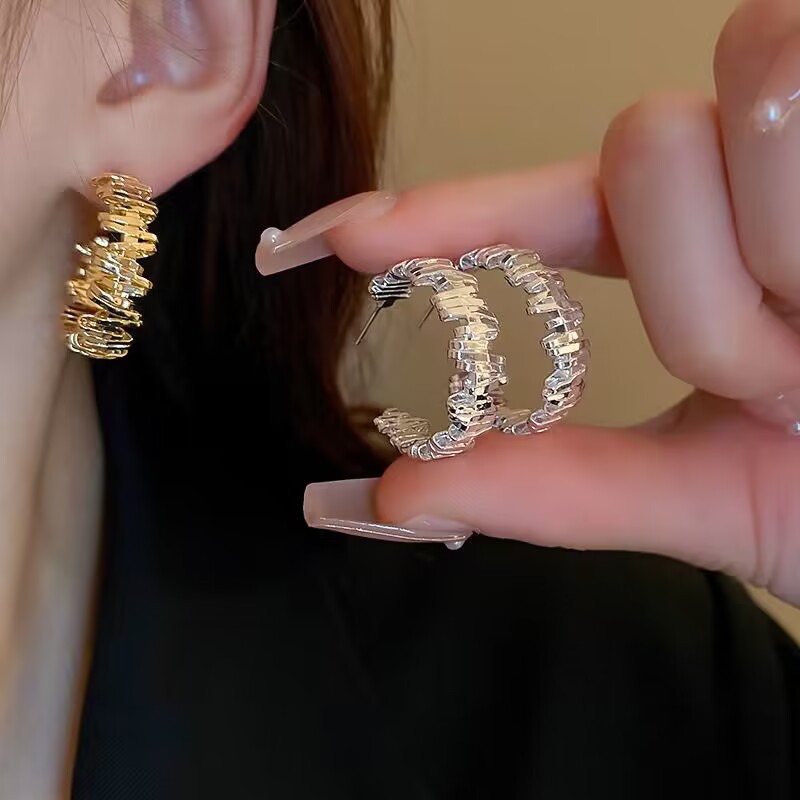 洗練されたデザイン感が誇張されているc型耳輪気質が贅沢な新しいイヤリングは不規則に金属耳飾りを巻いている