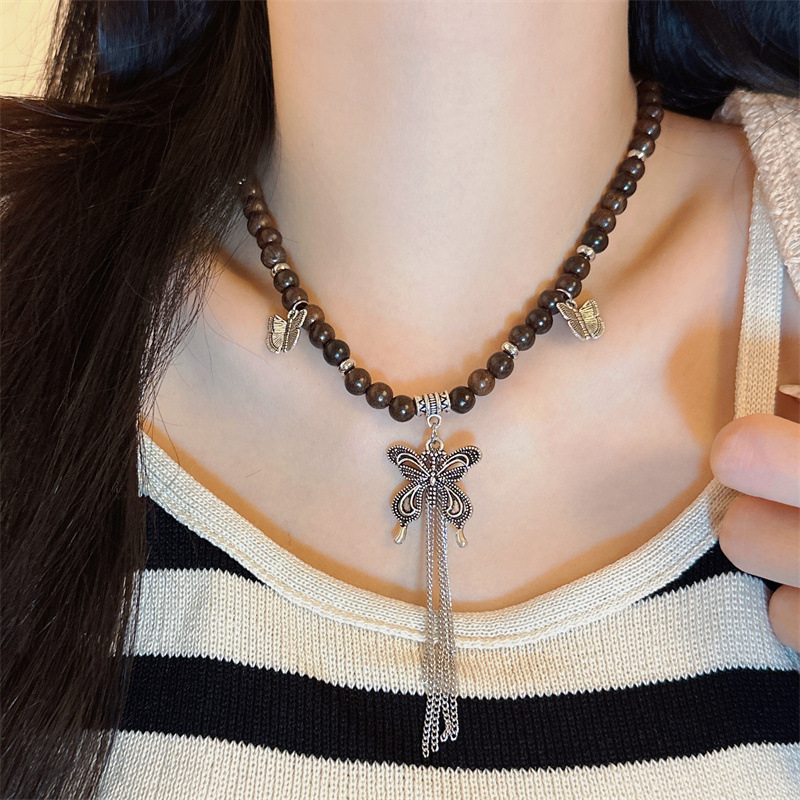 レトロな文芸の流蘇の蝶の数珠のネックレスのinsの小さい大衆の新型の個性は簡単で甘いですクールな鎖は飾ります。
