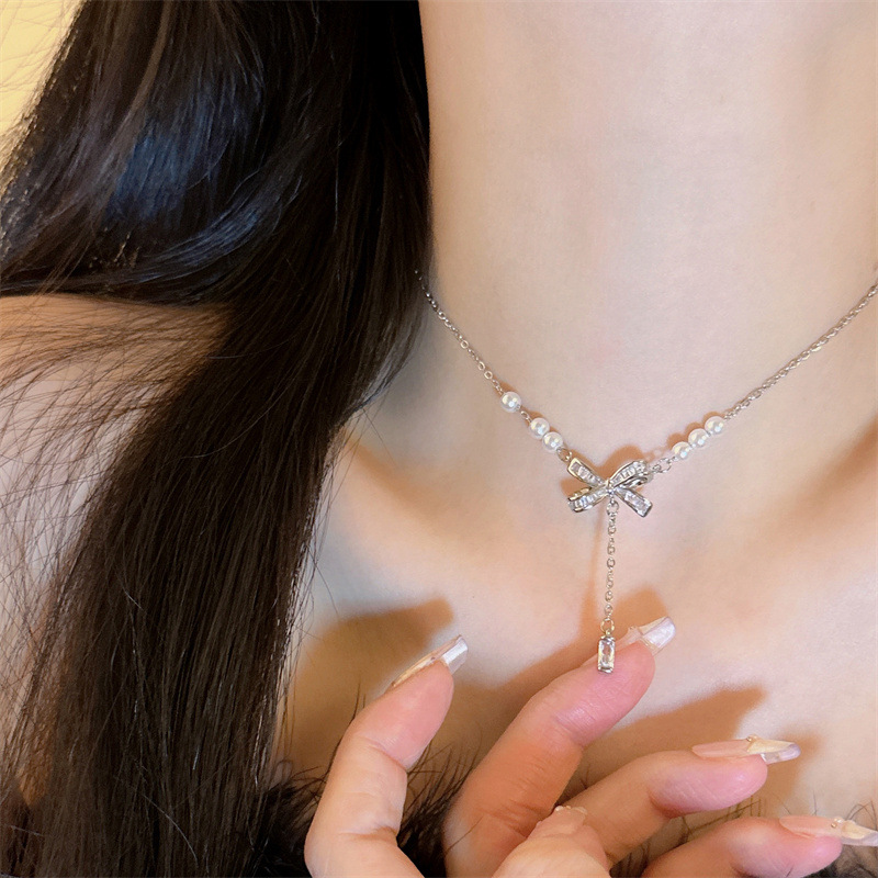 軽くて豪華な真珠の蝶結びの鎖の鎖の小さい大衆の設計の高級感の鎖の鎖の気質のシンプルなジルコンのネックレスの女性