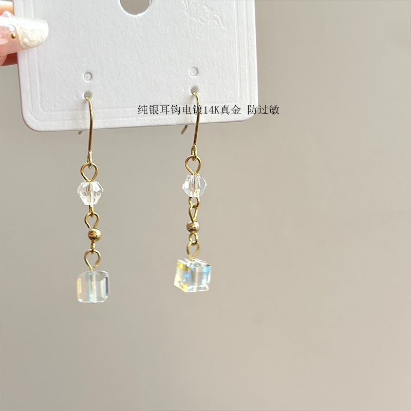 方糖気質水晶イヤリング2023新型軽贅沢高級感耳フックins小衆シンプルデザイン感耳飾り