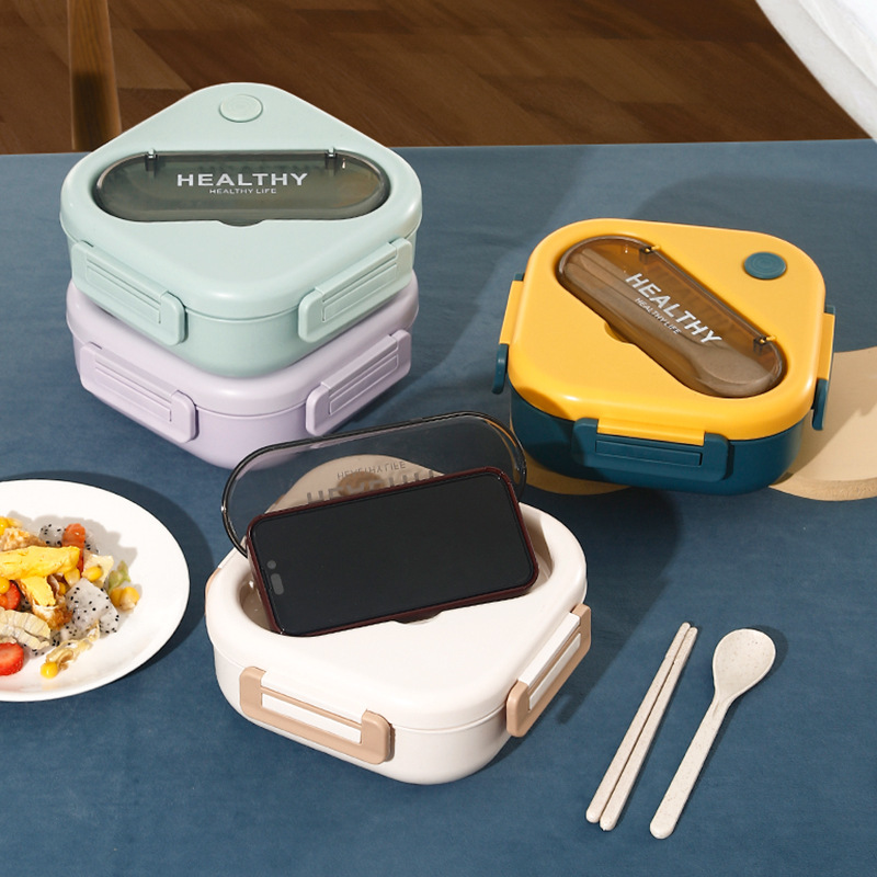かわいい恐竜三角形弁当箱子供分格密封弁当箱スプーン付き電子レンジ加熱弁当箱セット