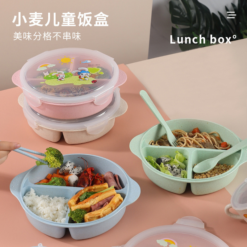 小麦わら子供食器セット幼稚園の赤ちゃんは特別に丸い食事をしています。
