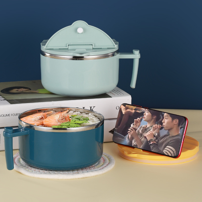 304ステンレスの泡の碗の学生の寮は蓋を持って水のインスタントラーメンの碗の大容量の食事の杯の弁当箱の印のロゴを切ります。