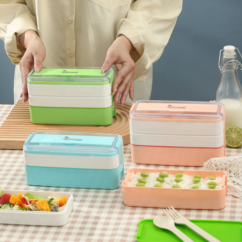 日本式二重弁当箱分格携帯式弁当箱学生サラリーマン電子レンジ弁当箱印刷ロゴ