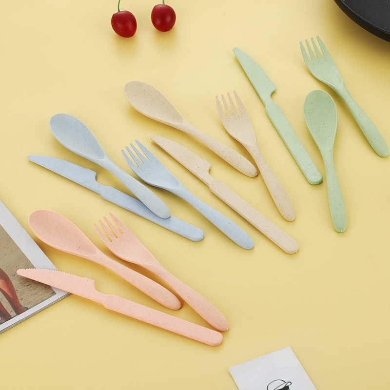 国境を越えたアマゾン小麦わら食器セットナイフフォークスプーン食器3点セット屋外携帯食器マーク