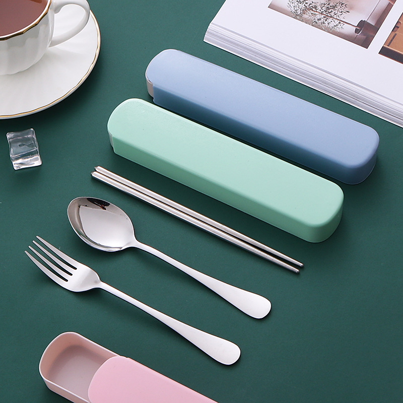 ステンレス携帯食器セット箸スプーンフォーク食器3点セット学生屋外プレゼント食器ロゴ