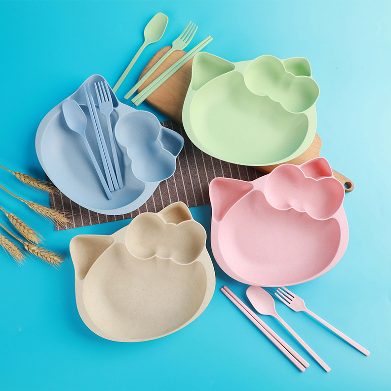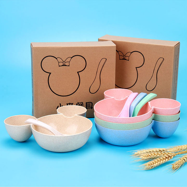 小麦わら子供分格ファーストフード皿幼稚園赤ちゃん漫画補助ボウルスプーンセット小プレゼントマーク
