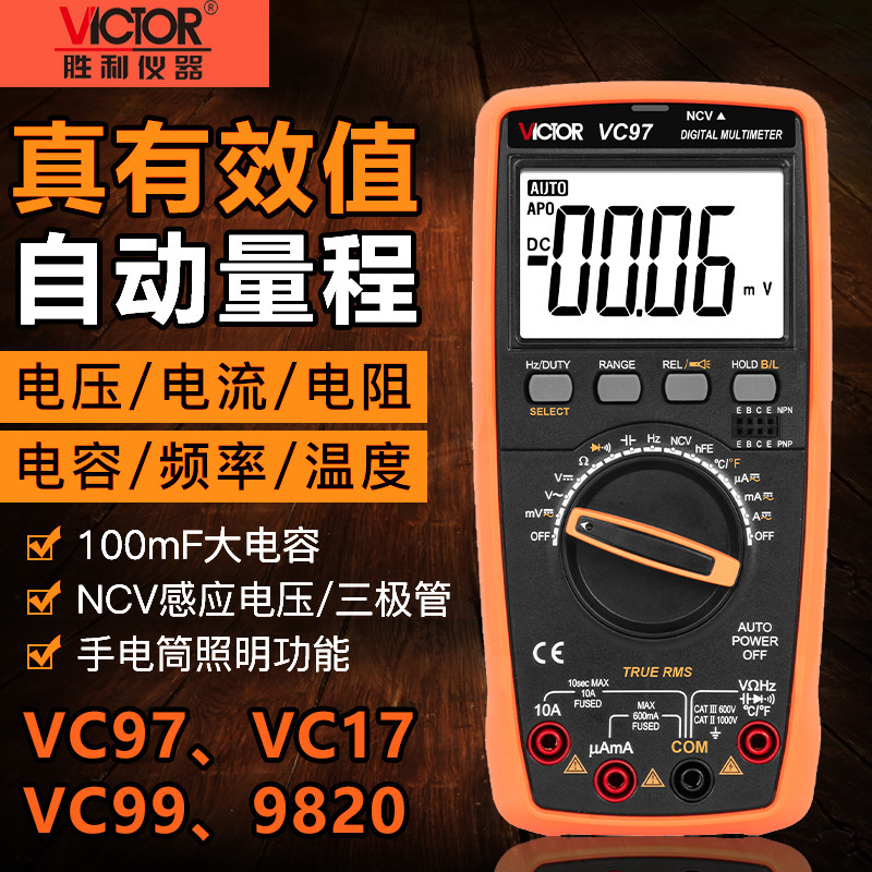 勝利vc 97/99/17/9820デジタルマルチメーター全自動万能時計多機能知能電気技師防焼