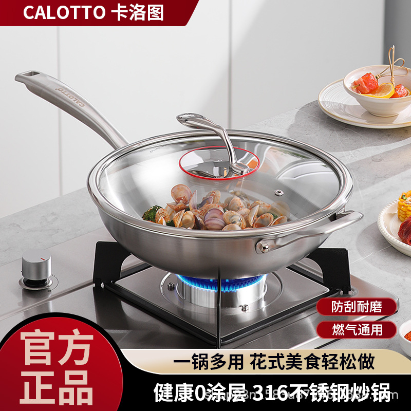 カルロ図316ステンレス炒め鍋は鍋にくっつかないコーティングなし炒め物五層鋼炒め鍋ガス丸底炒めスプーン