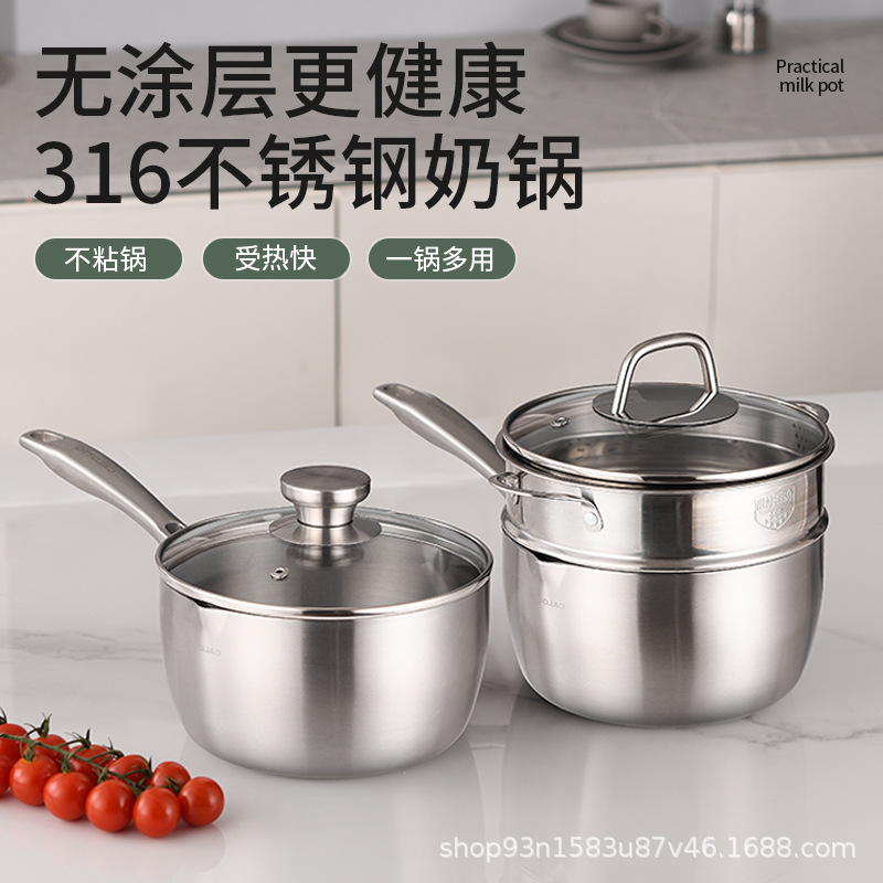 316ステンレススチールコーティングなしミルクポット非粘着ポット食品グレード外セラミックミルクポット一体成形厚いカップラーメン鍋