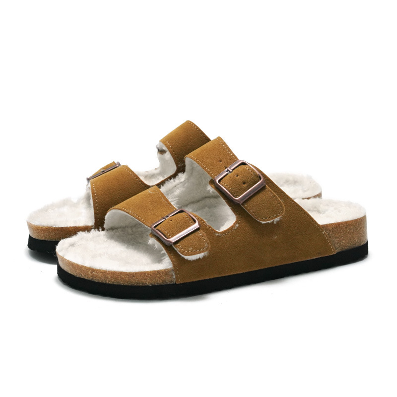 睿足2023秋冬の新商品は絨毛の男性のコルクのスリッパの女性の砂浜の羊の小毛をまねて国境を越えます。