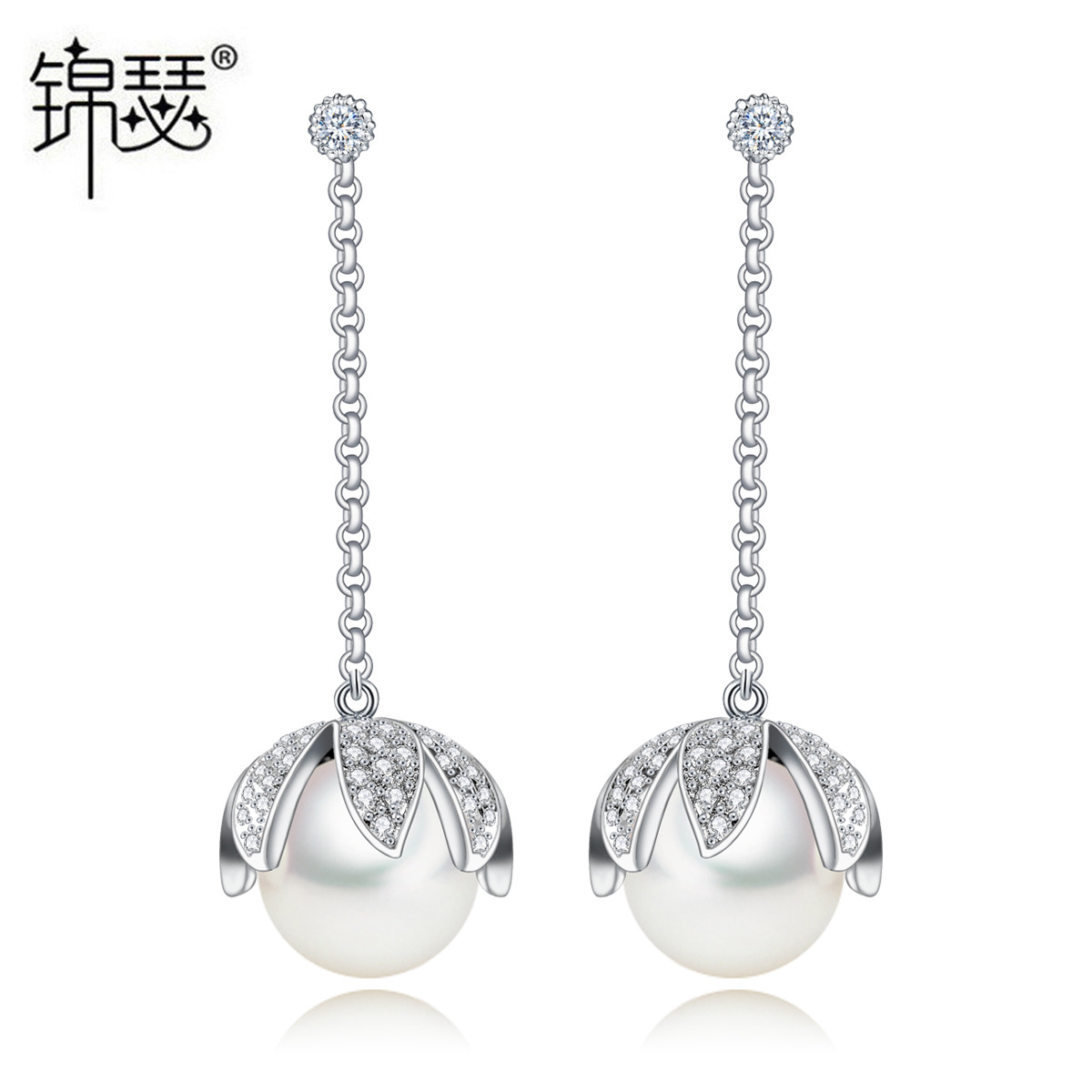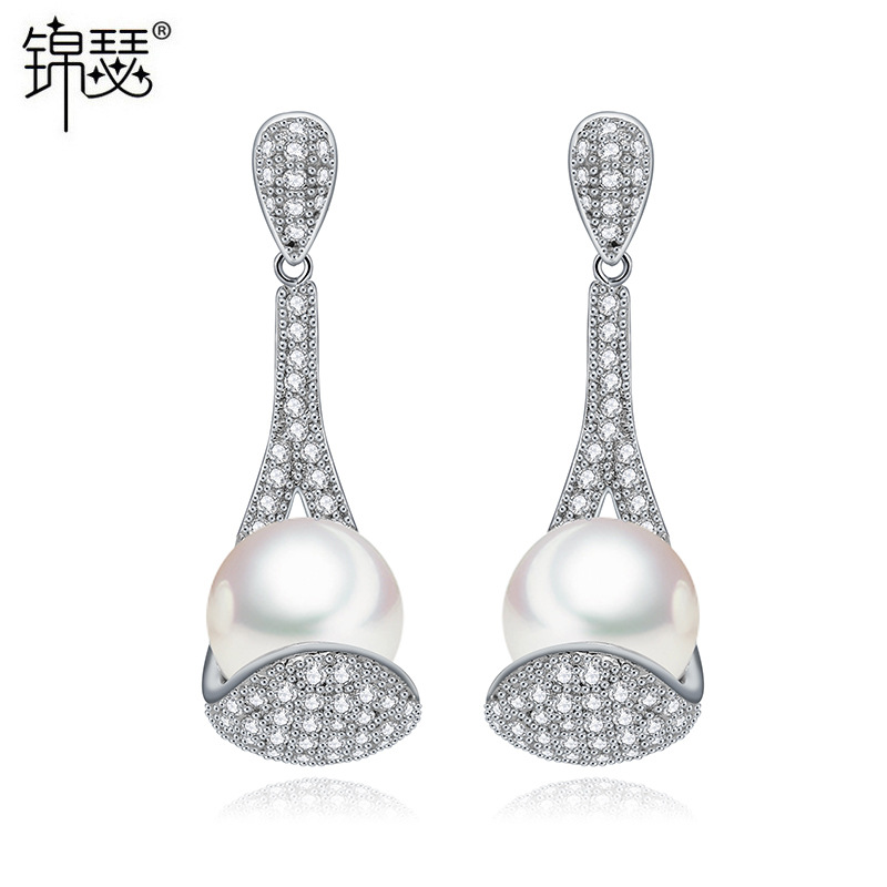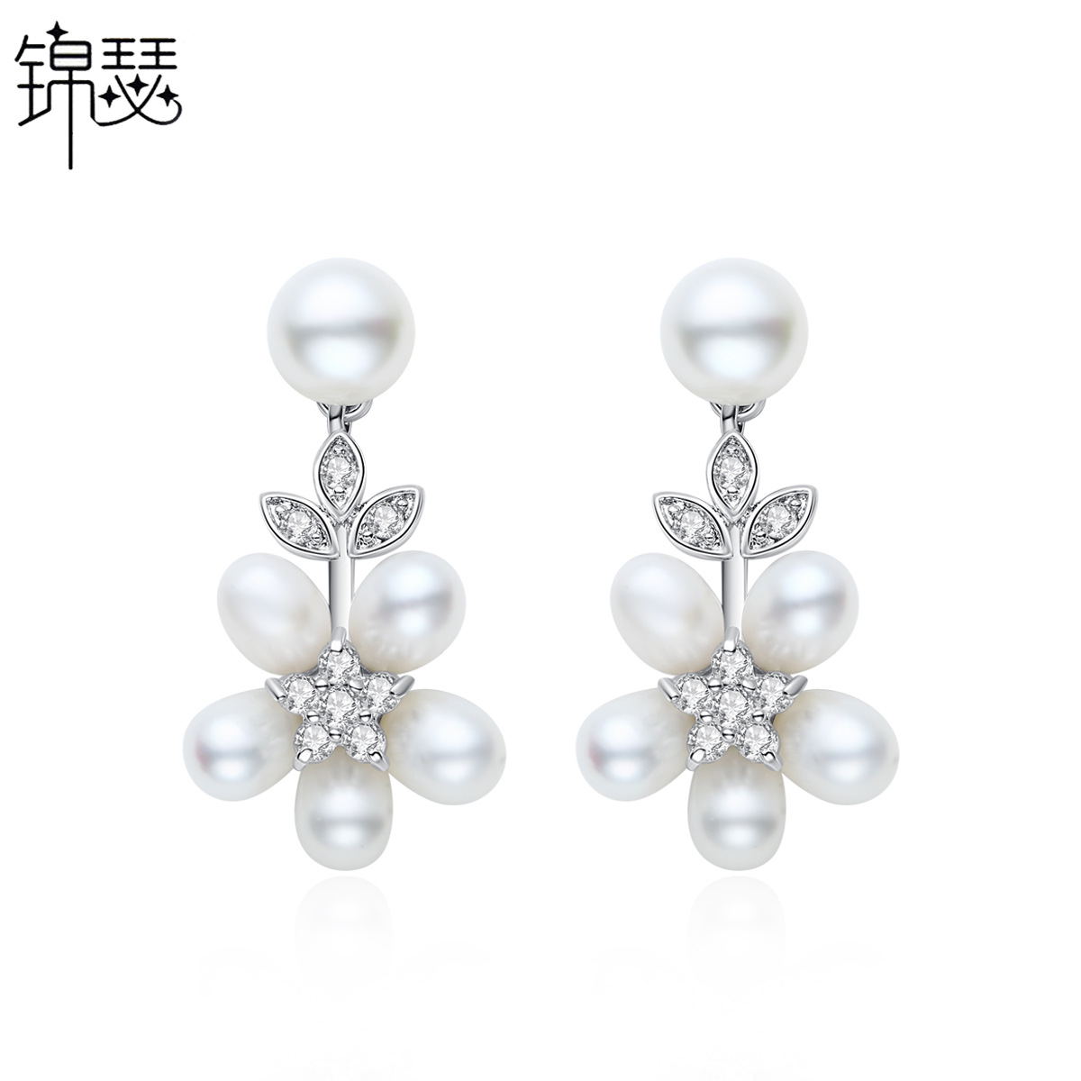 錦瑟淡水真珠花イヤリング銅にジルコンを入れたイヤリングファッション韓国風シンプルファッション小衆耳飾り