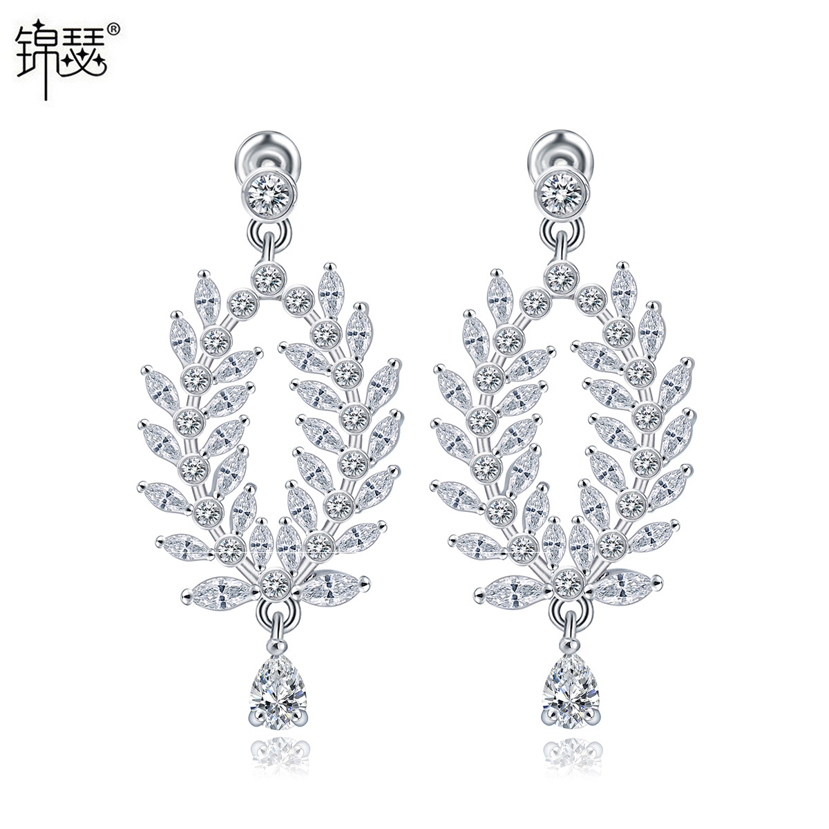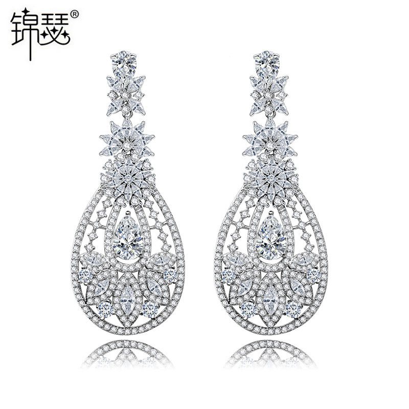 錦瑟梅の花のイヤリングの銅は透明のジルコンのイヤリングをはめ込んで欧米の気質の新婦の宴会の超フラッシュのイヤリングの女性の卸売りをします。
