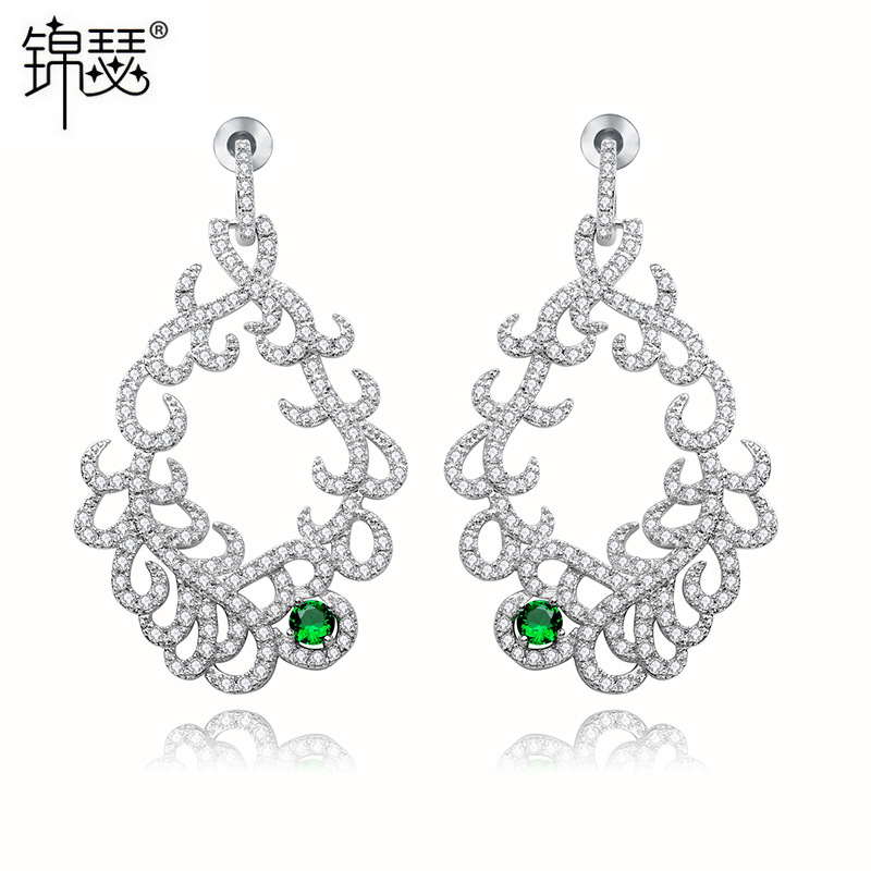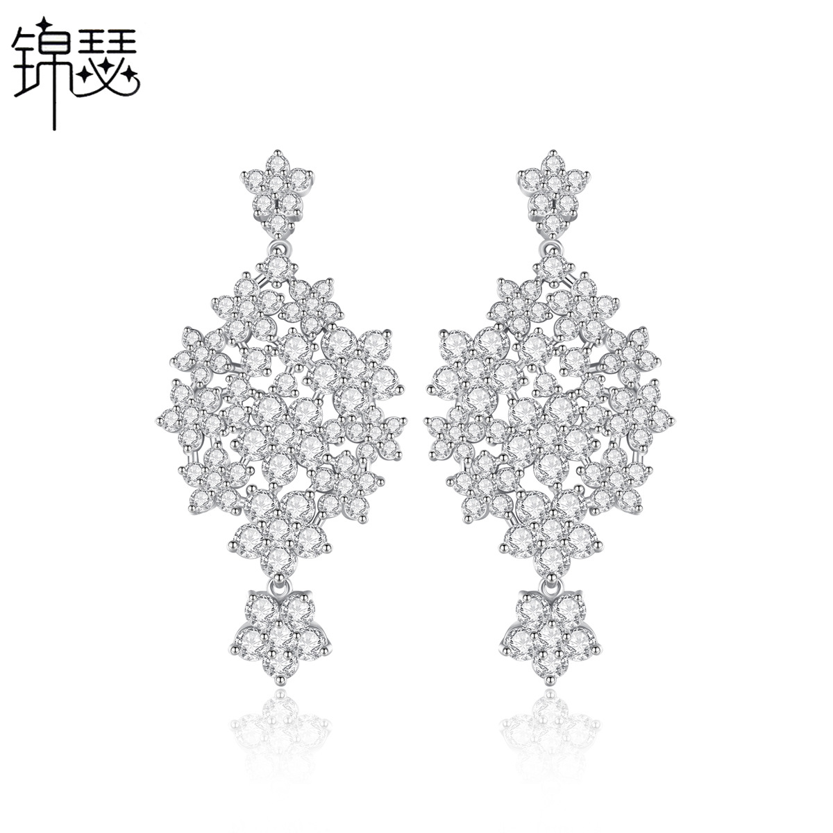 錦瑟花嫁ジルコン耳飾り銅モザイク水晶イヤリングファッション甘い気質高級感イヤリング女性卸売り