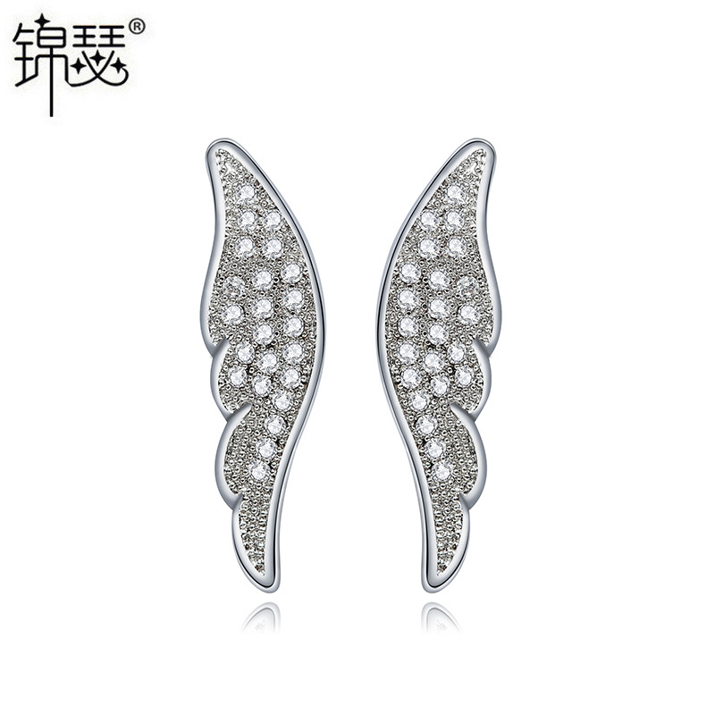 錦瑟の天使の翼のピアスの銅はジルコンのイヤリングの水晶のジルコンの韓国版が流行しています。
