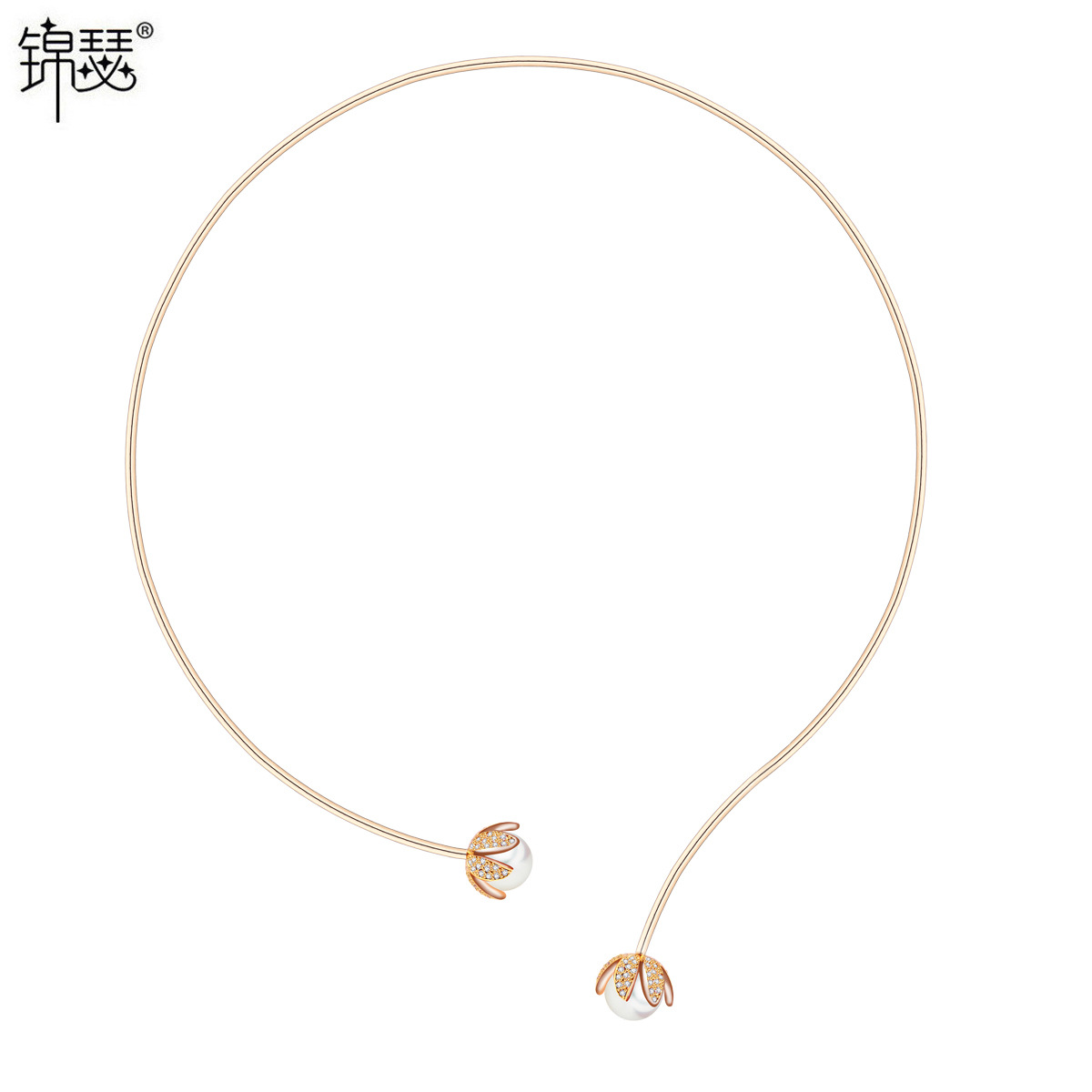 錦瑟首輪のネックレスの女性銅はジルコンの貝殻の真珠の首輪を入れます。