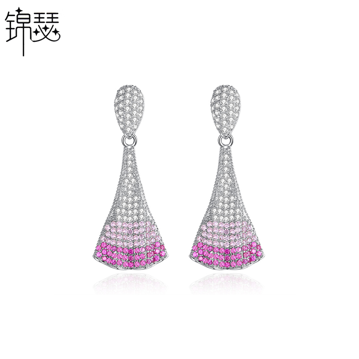 錦瑟スカートイヤリング銅微嵌グラデーションジルコンロングスカートイヤリング個性創意ファッション耳飾り女性卸売り