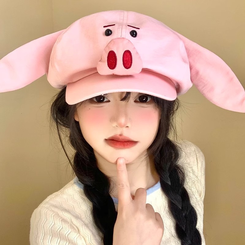 ネザ周辺太一飛天豚ピンク八角形帽子女性のための春と夏の 2025 新しいかわいい面白い画家の帽子