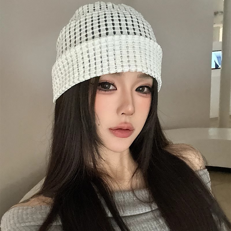 小衆ニットの透かし彫りの山の帽子の女性の春の夏の薄い金の通気性は顔の小さい包頭の帽子の大きい頭の周りの冷たい帽子の潮を現します。