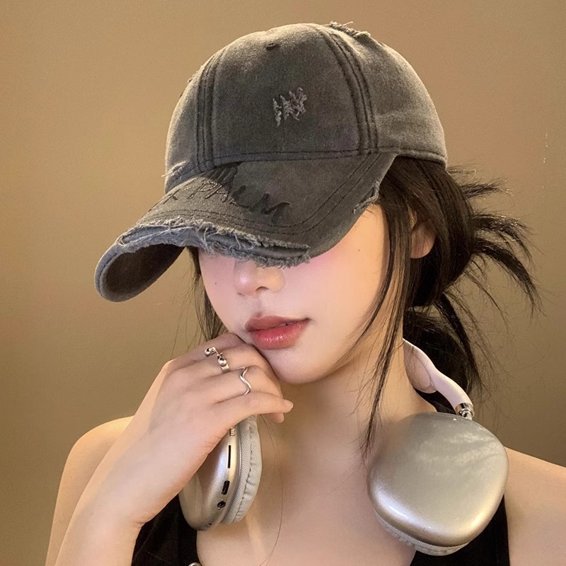 アメリカの水洗いは古い穴を割ったカウボーイ野球帽の女性レトロな潮牌鴨舌帽の広いつばに顔の小さな帽子が湿っている