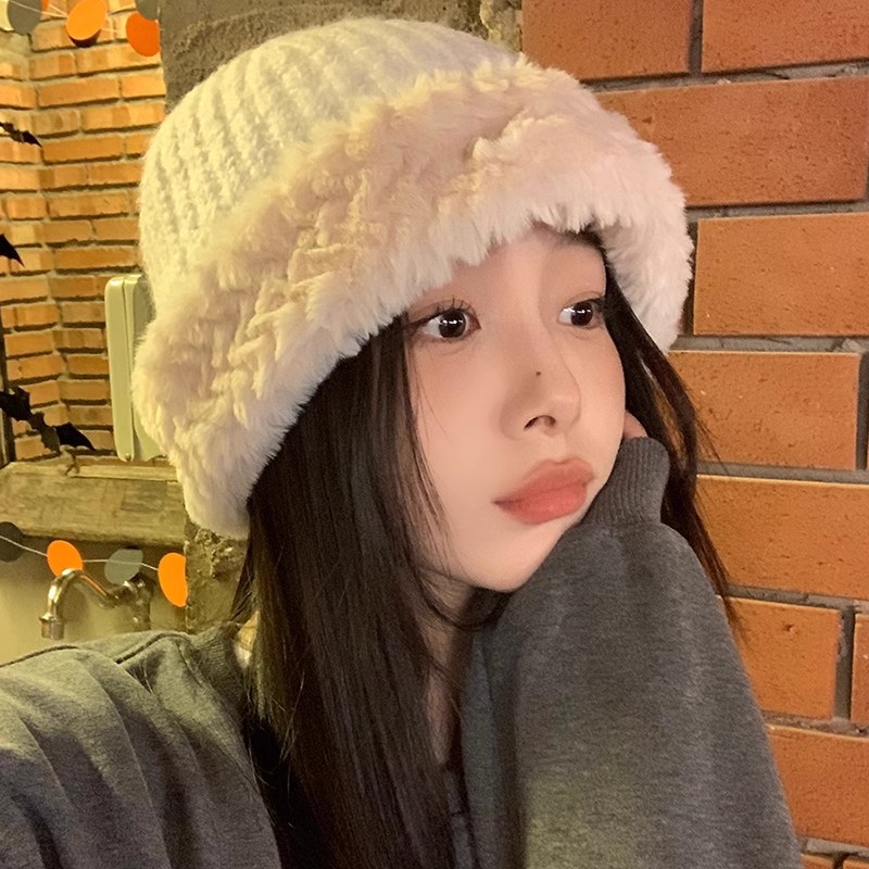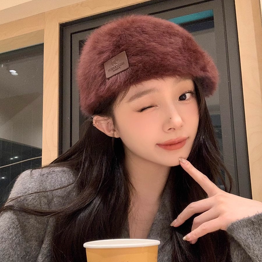 日本製メタルラビットファーベレー帽レディース秋冬毛皮で覆われた甘い顔が見える小さなペインターハットレトロリバースウェアフォワードハット
