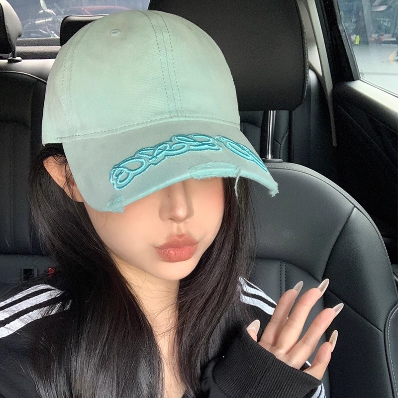 子犬の刺繍の野球の帽子の女性の韓国版の百合春夏の新型の広いつばの柔らかい頂の大きい頭は顔の小さいアヒルの舌の帽子を現します。