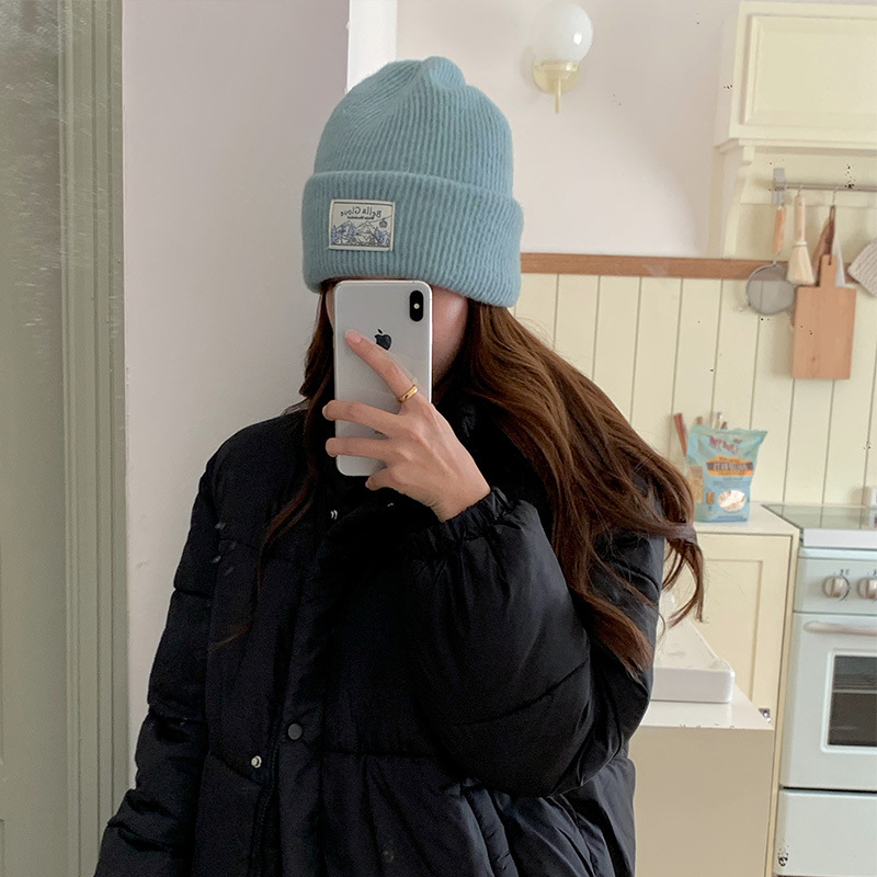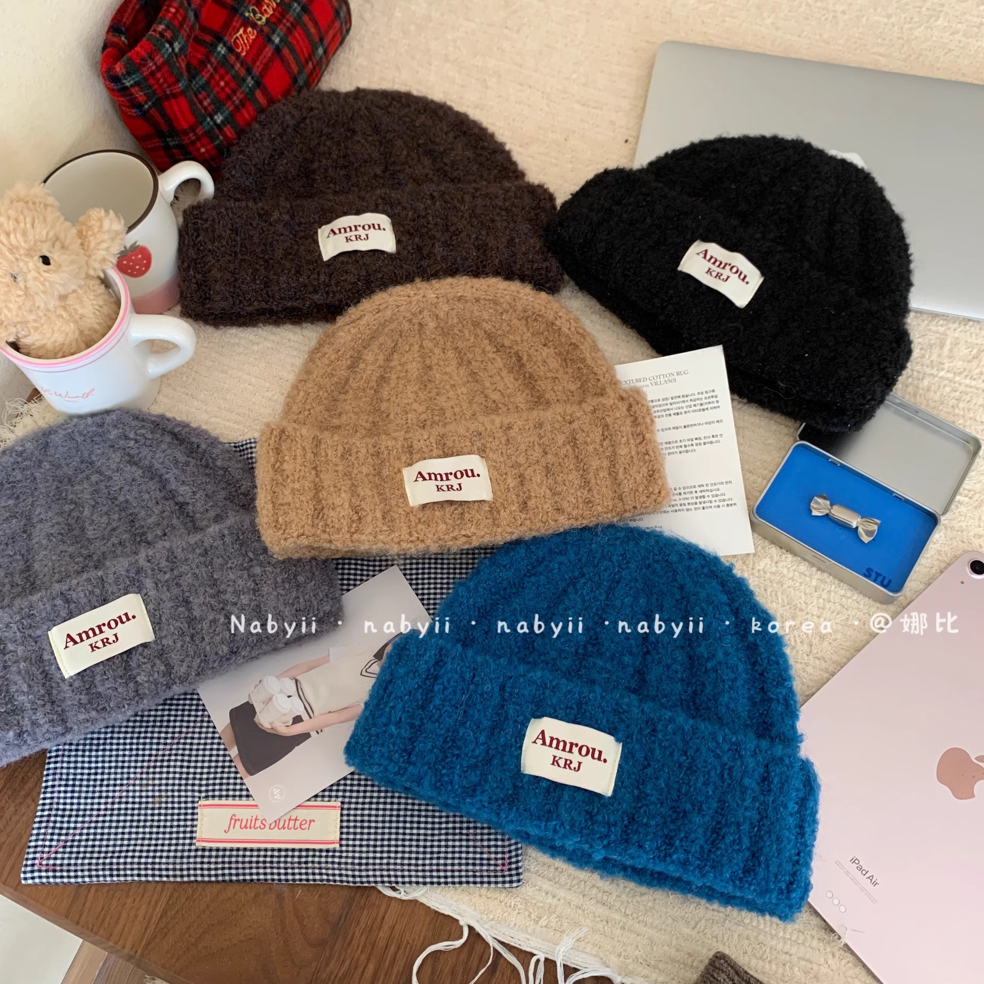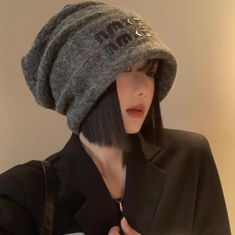 高品質ラムウール漁師帽子女性の秋と冬カジュアル多用途金属小さなラベル韓国スタイルウール暖かい帽子
