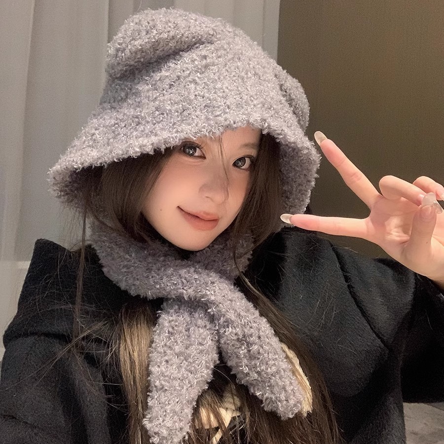Nuojiji かわいいクマ暖かいぬいぐるみ帽子女性の韓国風冬の帽子スカーフオールインワン防寒耳保護雷峰帽子