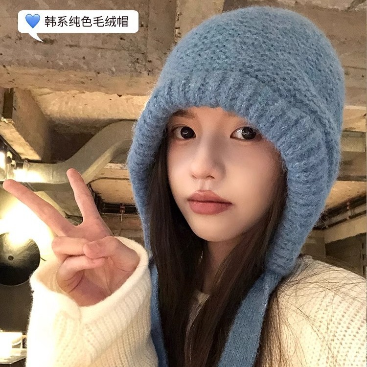 韓国風ウール帽子、女性用、秋冬学生用、厚くて暖かいつま先耳保護帽子、頭囲が大きい、顔が見える、小さな防寒帽子、トレンディ