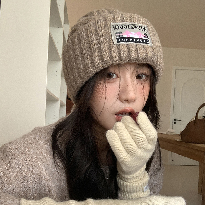 アメリカンスタイルの布ラベルツイストウール帽子女性用秋と冬韓国スタイル多用途甘い暖かい顔見せ小さな耳保護ニット帽子