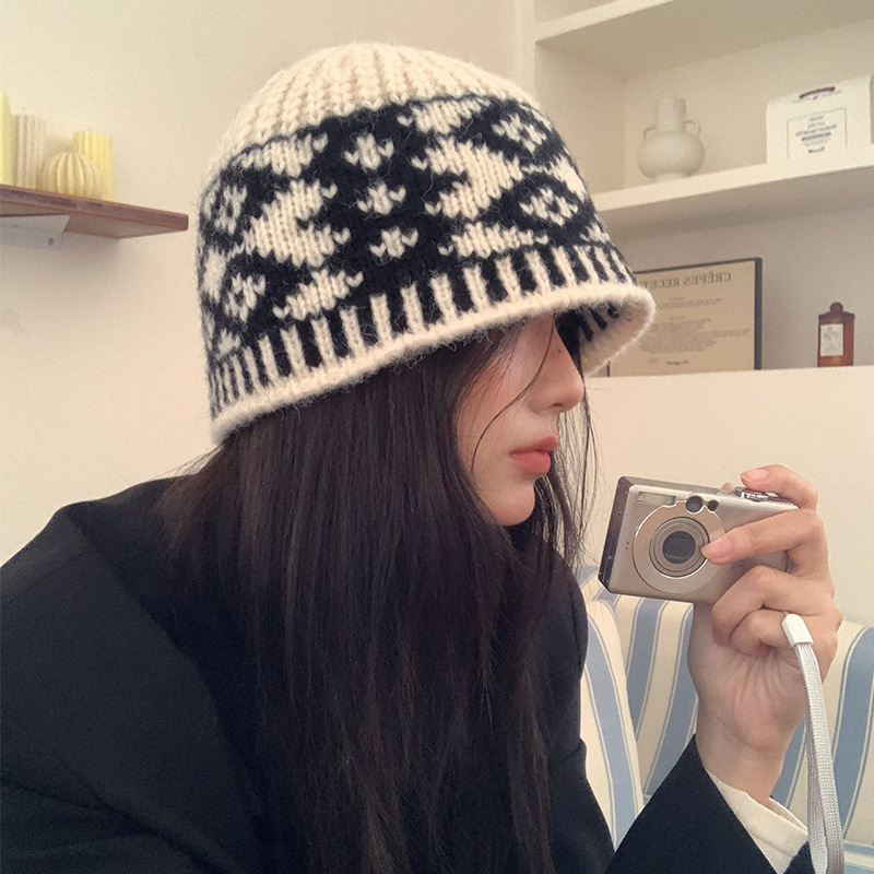 韓国ニッチデザイナースタイルニット防寒帽子女性のレトロジャカード秋と冬多用途暖かい耳保護ウール帽子