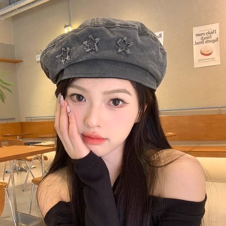 アメリカのレトロな布の星のベレー帽の女性の韓国版の水洗いは古い百合の顔の小さい画家の新聞の子供の帽子の潮を作ります。